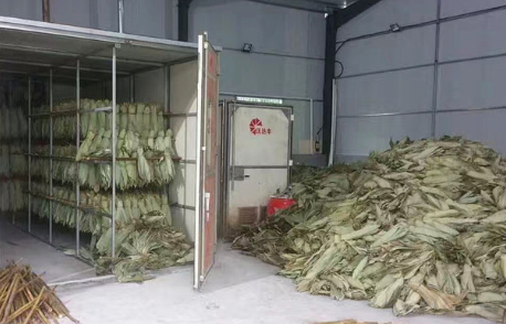 1:粽葉烘干采用頂部出風(fēng)的上下循環(huán)系統(tǒng)時(shí),不能達(dá)到烘干房內(nèi)的粽葉烘干均勻,所以使用側(cè)出風(fēng)的側(cè)面360循環(huán)系統(tǒng)較為適合,側(cè)循環(huán)的烘干系統(tǒng)對于粽葉的擺放有一定要求,熱風(fēng)需要穿過粽葉之間的空隙回到尾部回風(fēng)口,所以粽葉的擺放需要留出風(fēng)路的間隙,5-10公分左右較為合適。
